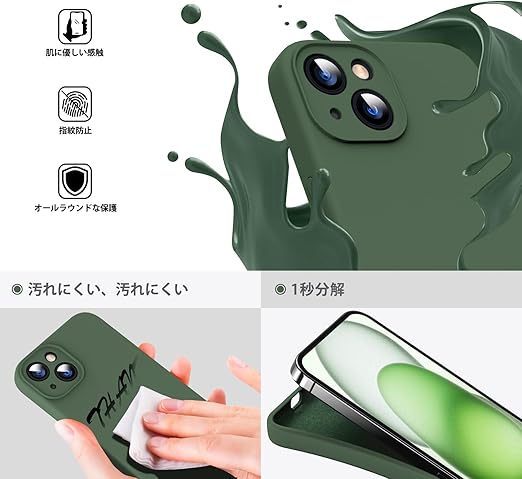 Supdeal iPhone 15 Plus ケース 対応液体シリコン [耐衝撃] [柔軟TPU液体シリコン] [ソフトタッチ] [レンズの全面保護] [指紋防止] [落下防止] [滑り防止] 軽量 4層保護 アイフォン 15 Plus スマホカバー 6.7インチ(グリーン) a
