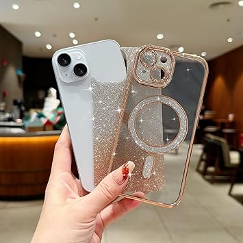 透明&グラデーショングリッターデザイン:このスパークルiPhone 15ケースは、透明なケースに