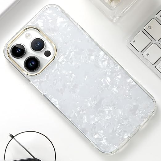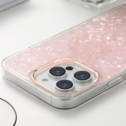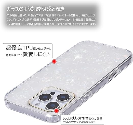 【高級感漂う貝柄】内側は綺麗な貝柄、外側はガラスのような透明感と輝きのポリカーボネート、カメラレンズ部分はキラキラのゴールドメッキ、エレガント、シンプルでおしゃれな落ち着いた色合い・6色展開、高級感を求めるなら、ぜひこの貝柄ケースを