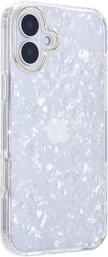 MRedoxe iPhone 16 Plus ケース キラキラ 貝殻柄 クリア 韓国 いphone16plus ケース ゴールドメッキ アイフォン16plus 可愛い おしゃれ B-16plus-bai a
