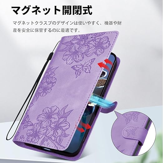 iPhone 16E ケース 手帳型 iPhone 16E用 カバー スマホケースiPhone16E 財布型 アイホン16E 第4世代 カバー カード収納 スタンド機能 いphone16E 手帳型ケース アイフォン16Eケース 全面保護 おしゃれ桜蝶 防水 高級PUレザー あいふぉん16e携帯ケース 16e(2025) 6.1 inch 軽量 耐衝撃 - パープル a