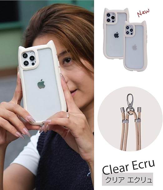 LIISEA iphone 15 ケース 可愛い iphone15 ケース クリア ストラップ付き アイフォン15 ケース ショルダー iphone15ケース 猫耳 可愛い 透明 耐衝撃 アイホン15ケース かわいい スマホケース iphone 15 韓国 いphone15 ケース クリアケース おしゃれ アイホン15ケース 携帯ケース 肩掛け 首掛け クリアエクリュ a