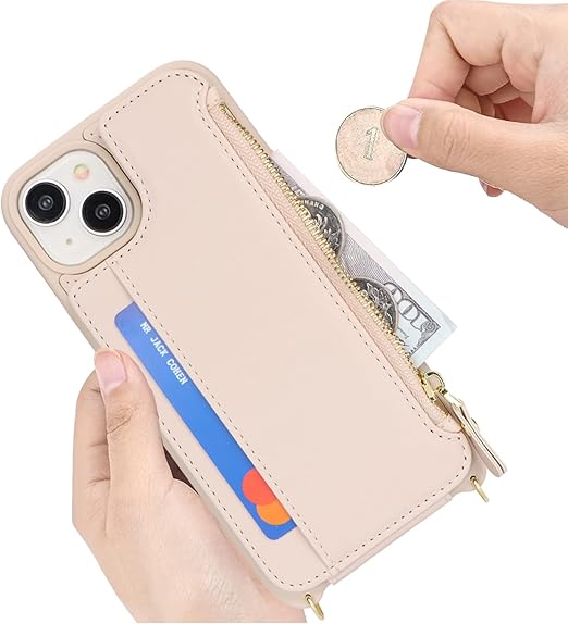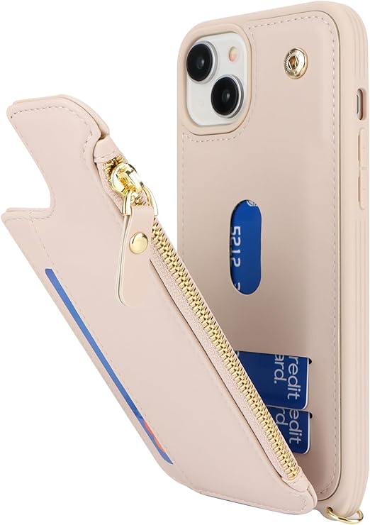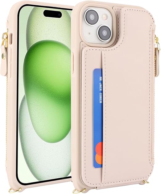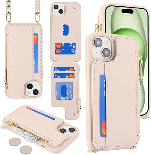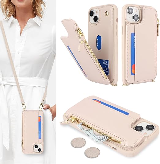 for iPhone 15 Pro ケース アイフォン 15 Pro ショルダー リング付き 手帳型 上下開 15Pro CASE カバーSunYoo カード収納 横置き スタント肩がけ 首掛け 斜め掛け ファスナー ストラップ付き ショルダーケース クリームイエロー a