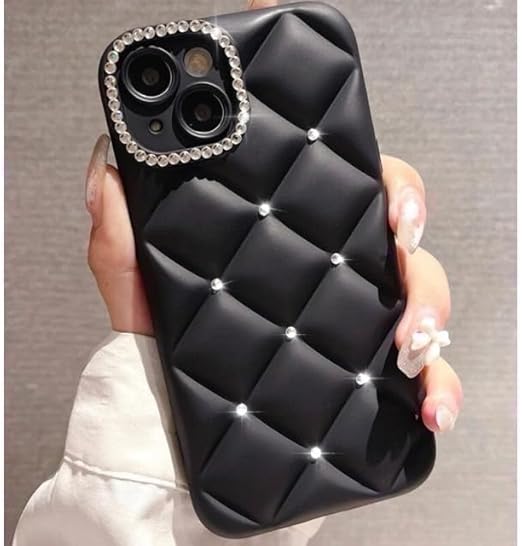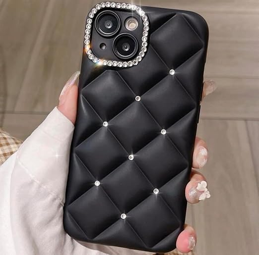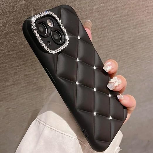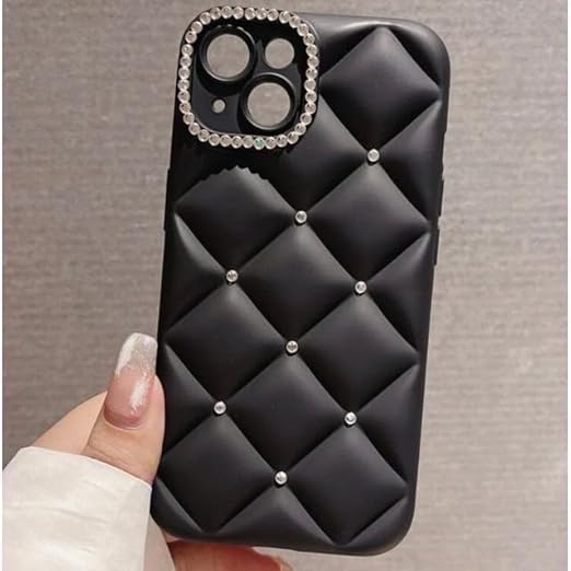 ノーブランド品アイフォン15用ケースシルバーストーンキルティングケース凸凹大人きらきら可愛いスマホケースカバーソフトキルティングデザインレディース女性かわいいカワイイシルバーアイホン15ケースアイフォン15ケースお洒落キルティングブラック黒,15用 a
