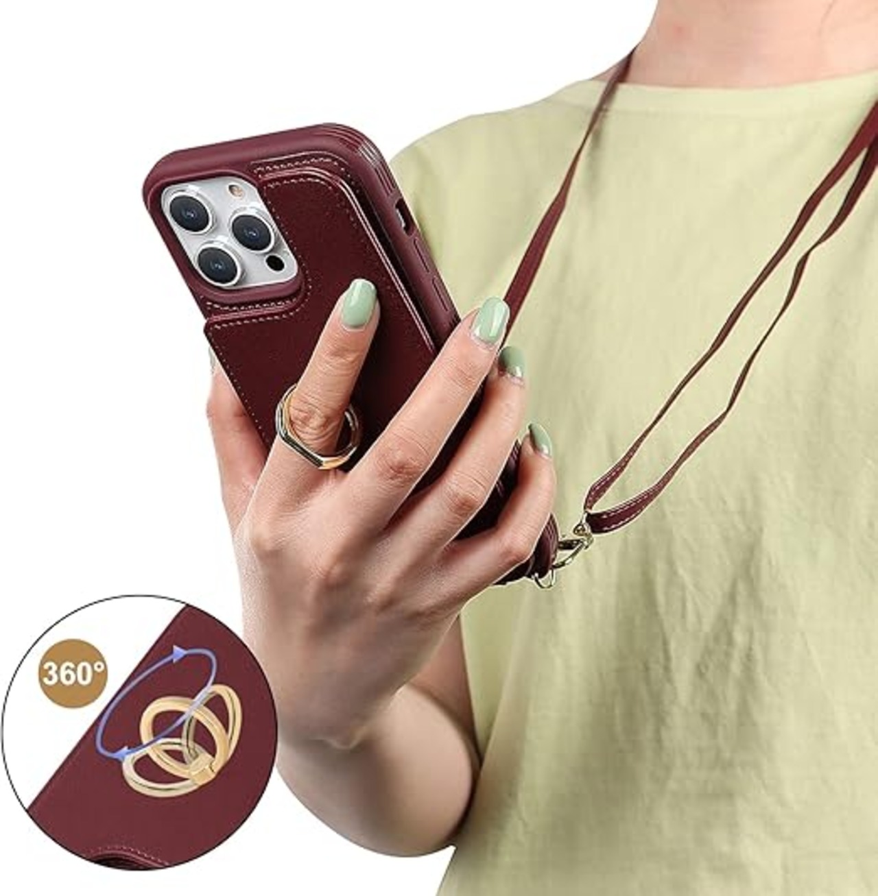 【女性の為の設計】①働く女性に欠かせない機能を盛り込んだカジュアルなレザーケース 幅広い世代の方に愛させるシックなカラー 買い物やお出掛けなど幅広い用途で活躍します。普段使いはもちろん、結婚式やパーティーなどでもお使い頂けます。②360度回転式リング付き:- 内蔵の360°回転可能なフィンガーリングホルダーにより、快適な片手グリップと操作が可能です。 ビデオやFaceTimeを見るのは簡単です。