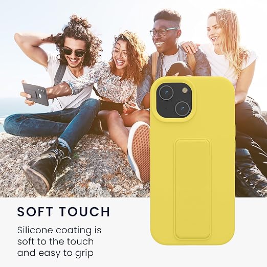 kwmobile iPhone 15対応 ケース - スマホ スタンド 保護ケース スマホカバー TPUケース - まばゆい イエロー a
