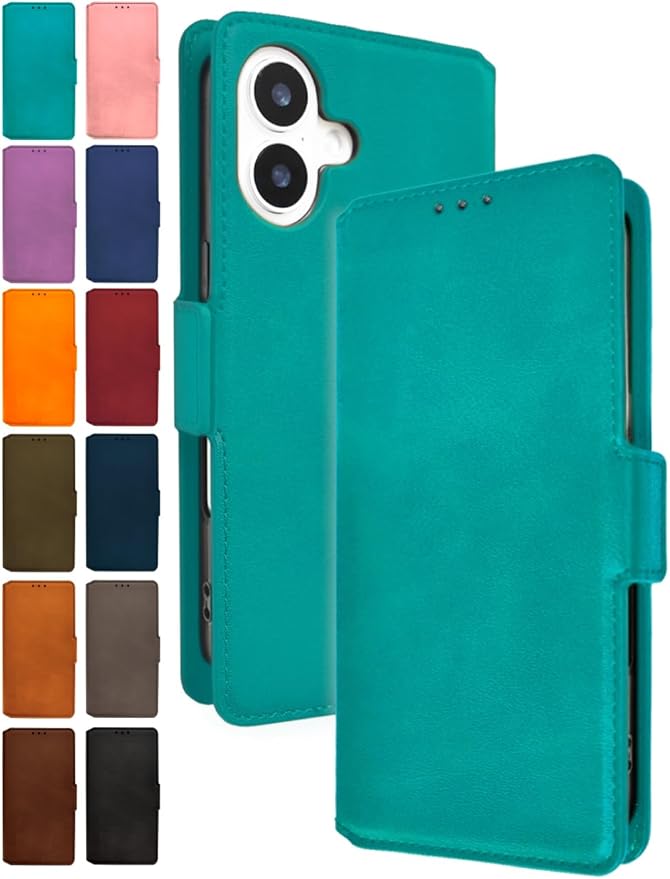 シズカウィルRe iPhone 16 ケース カバー 手帳型 本革調 レザーケース 1個入り エメラルドグリーン a