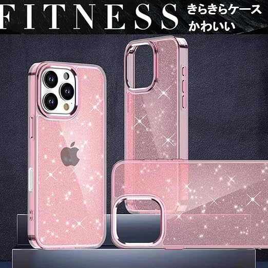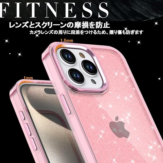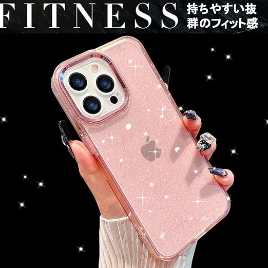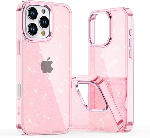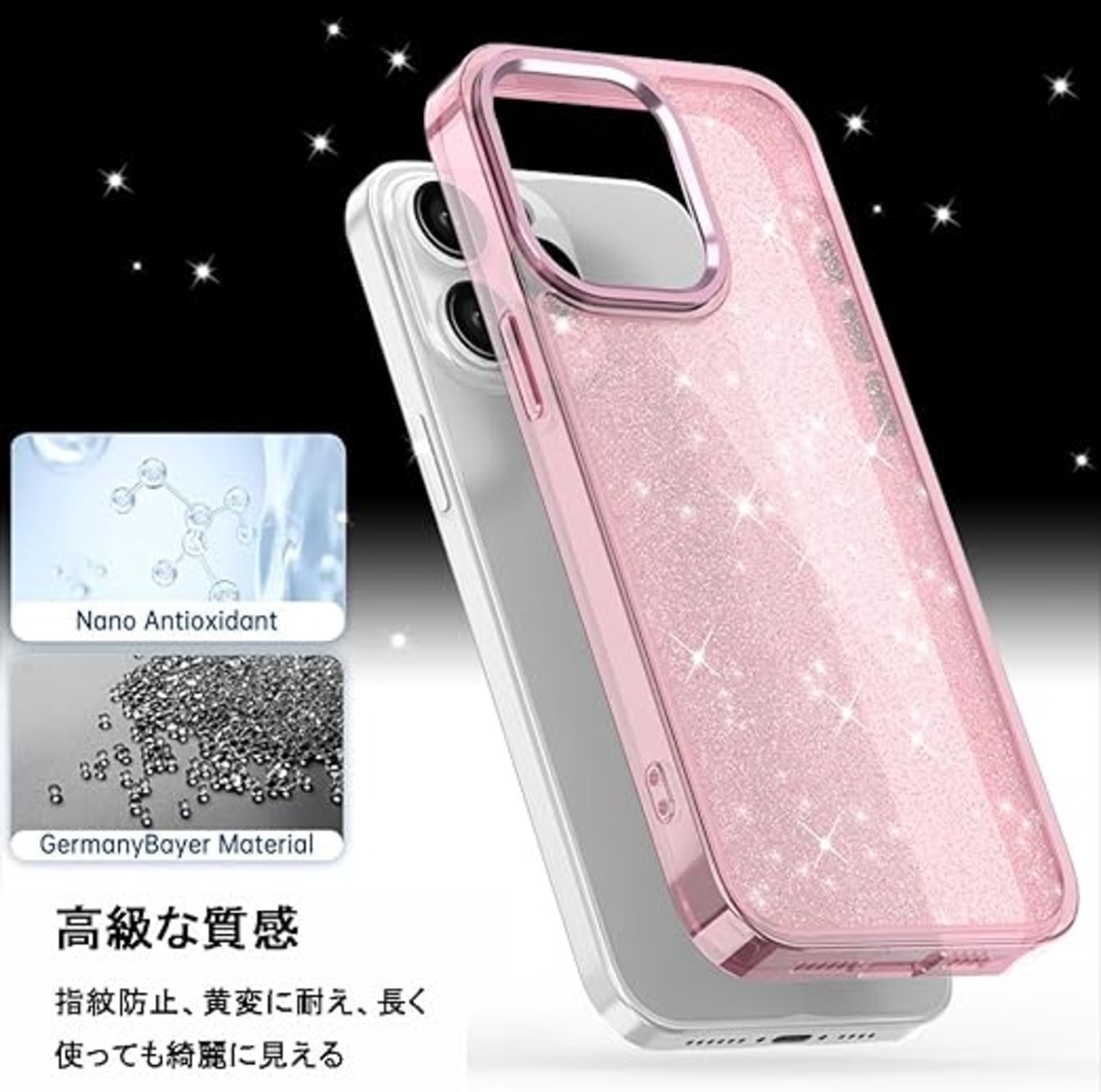 JOOBOY スマホケース 対応 iPhone 16 Pro Max 6.9" ケース クリア ケース 透明 きらきら ブリンブリン 衝撃吸収 かわいい キラキラ 女性 人気 キャラクター おしゃれ アイフォン16 プロマックス 携帯カバー (クリア-ピンク, iPhone16 Pro Max) a