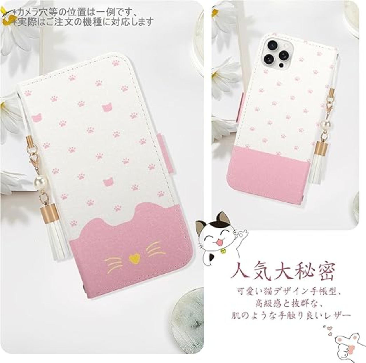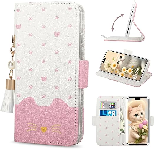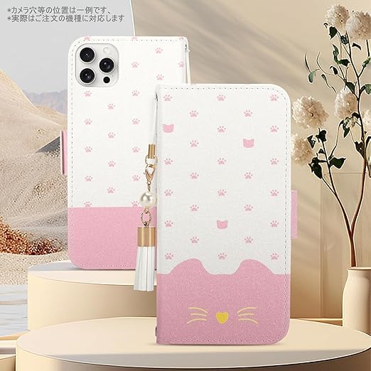 iPhone 16e ケース 手帳型 iPhone SE4 ケースアイフォン16e チャーム な タッセル ストラップ付き かわいい 猫 カード入れ収納 スタンド機能 マグネット式 TPU iPhone16eスマホケース カード入れ収納 (iPhone16e,ピンク) a