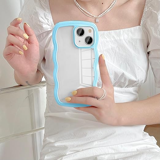 UEEBAI 対応 iPhone 13/iPhone 14 6.1 inch 用の ケース ソフト TPU カバー 可愛い おしゃれケース 透明 ウェーブ デザイン スマホケース ワイヤレス充電対応 軽量 薄型 耐衝撃 人気 波型 バンパー スマホケース - シエラブルー a