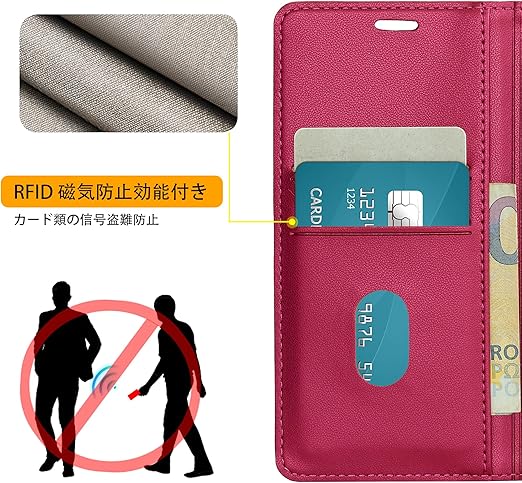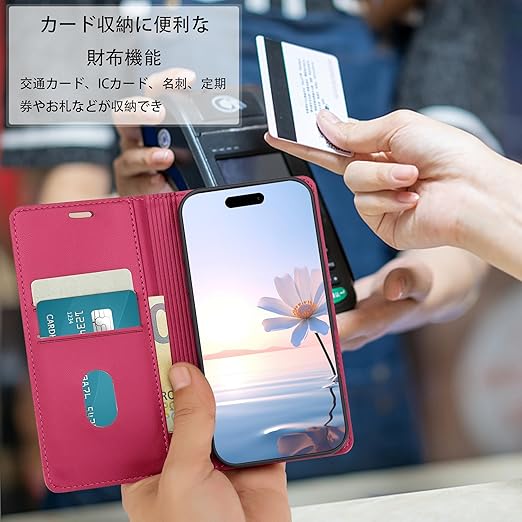 ・パール光沢のあるPUレザーを使用しており、柔らかく手触りが良いだけでなく、長時間の使用でも色落ちや劣化を防ぎ、天然皮革のような高級感と柔らかさを持ちながら、耐久性にも優れています。環境にも優しく、さらに耐水性や耐汚れ性も備えています。インナーケースは柔らかいソフトTPU素材を採用して、スマートフォンに完全にフィットするように設計されています。