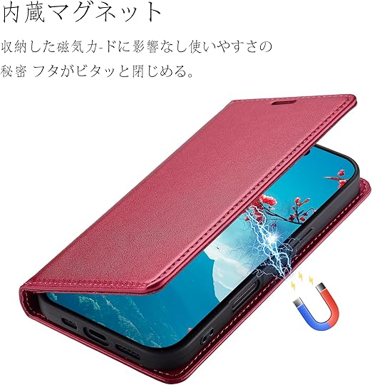 iPhone 14ケース手帳型 iPhone14手帳型ケース アイフォン14手帳ケース アップル iPhone 14 ケース 真珠光沢レザー RFID磁気防止 スマホケース 内蔵マグネット スタンド機能 カード入れ 耐摩擦 薄型 ワインレッド a