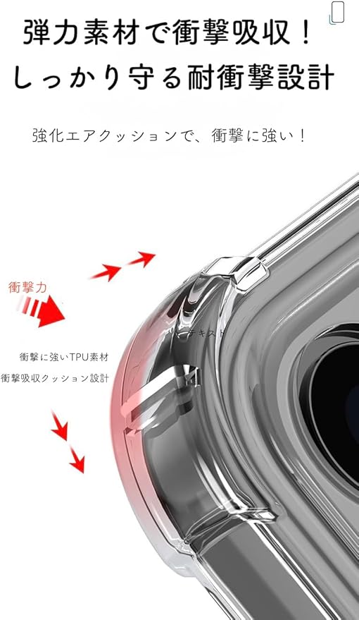 強化保護: 1.5mmの強化クッションを採用し、優れた耐衝撃性能を実現。iPhone本体をしっかりと保護