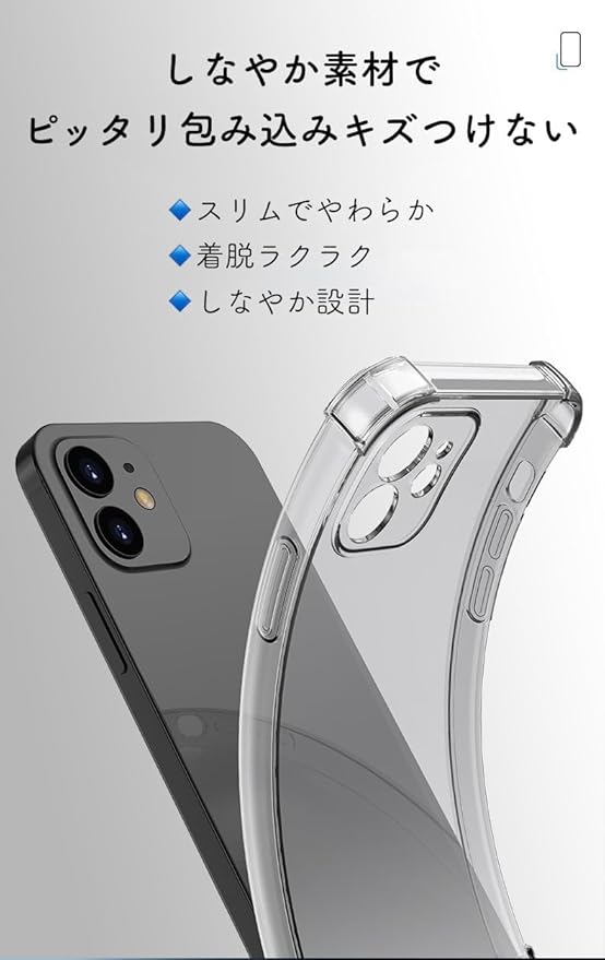 完全透明: クリア素材を使用し、iPhoneの美しいデザインを損なうことなく保護が可能