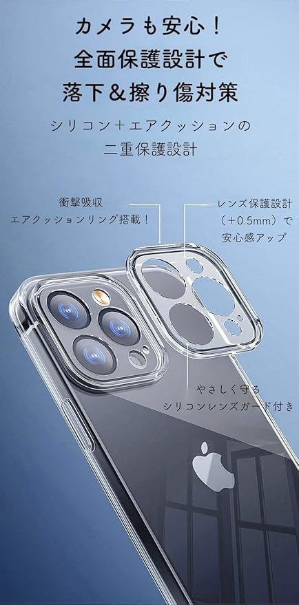 フルカバー設計: レンズ周りまでしっかりと保護する全面保護設計で、安心の使用感を提供