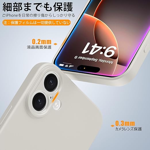 全面保護:このケースはiPhone 16 用を全面保護するように設計されております。 ケースの内側は精細なマイクロファイバーを使用、触り心地がよく。また、ケースのフレーム部分はスクリーンやカメラレンズより高くなっており、デバイスを置く際にも擦り傷からしっかり守ります