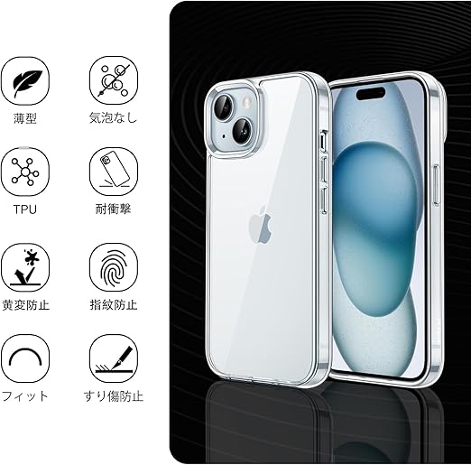 対応 iPhone 15 ケース 保護ケース 【TPU 軟性 全透明 全面保護 衝撃吸収】 カバー背面 ンプロテクター シェル クバー クリア ソフト 透明シェル ンプロテクター シェル a