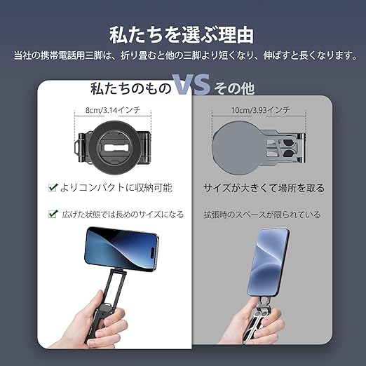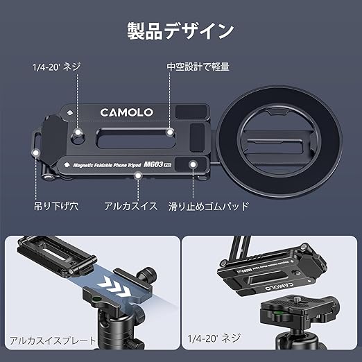 【強力な磁石&磁気リング付き】このアップグレードされたマグセーフ三脚は高級アルミニウム合金製で、強力な磁石を備え、耐久性があり頑丈で、従来
