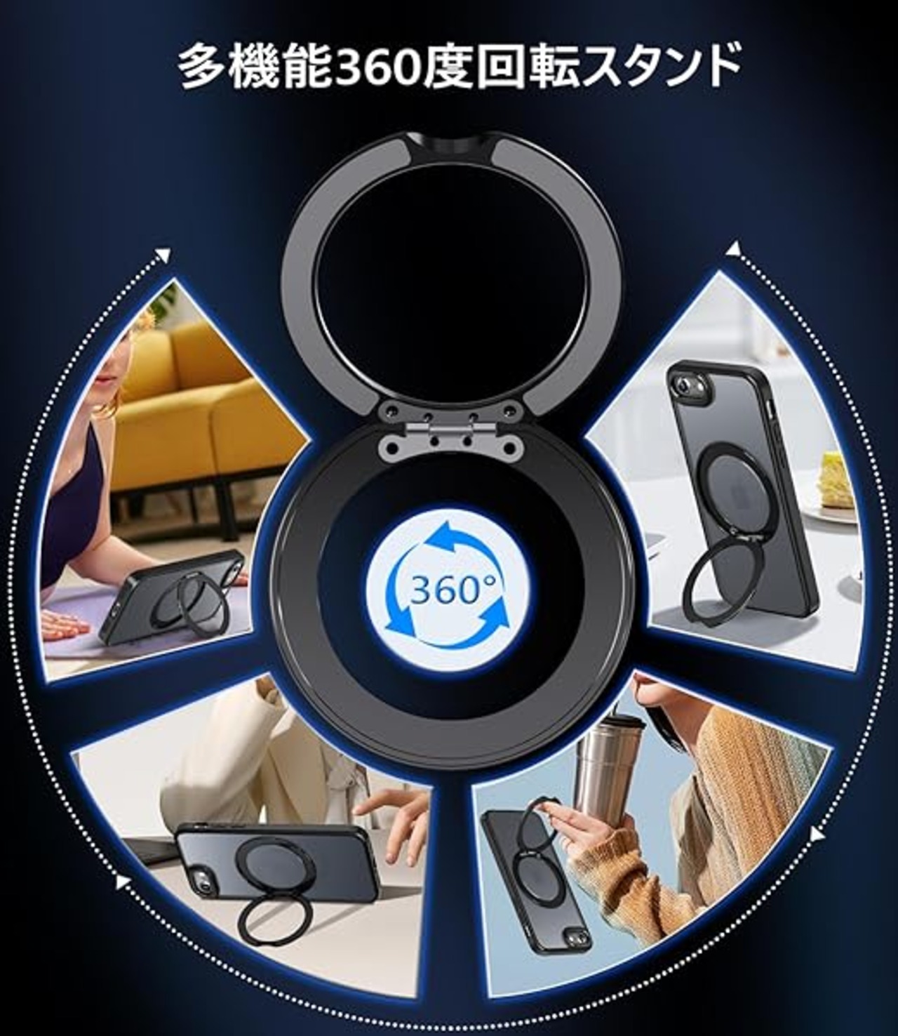 【360°回転式スタンド・縦も横も思いのまま!】360度自由自在に調整できるスタンドは、横画面でも縦画面でも、あらゆる角度が調整でき