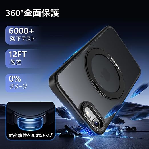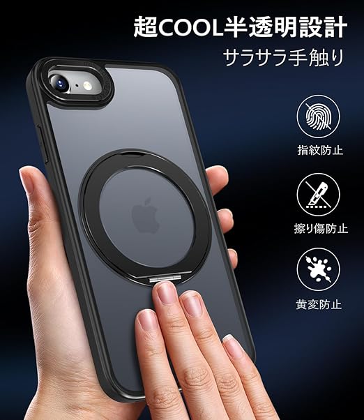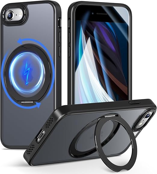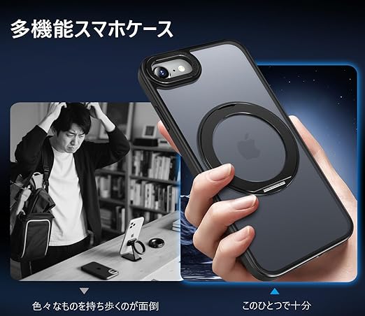 MINIKA iPhone SE2 iPhone SE3 用 ケース Magsafe 対応 360度回転 スタンド付き 多機能 スマホケース いPhone せ2/せ3 ケース 米軍MIL規格 耐衝撃 指紋防止 黄変防止 マグセーフ リング マグネット搭載 ワイヤレス充電 アイフォン SE2 アイホン SE3 スマホ カバー (ブラック) a