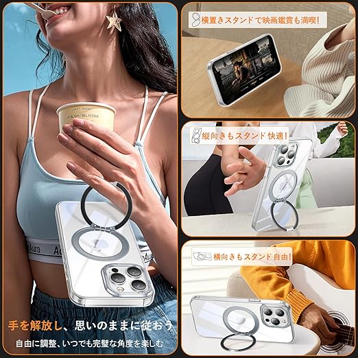 iPhone 13 Pro Max/iPhone 12 Pro Max 用 ケース Magsafe対応 ワイヤレス充電 360°回転スタンド 縦横両対応 Gunwon スマホケース 米軍規格 耐衝撃 半透明 マット感 マグセーフ 防指紋 リング マグネット搭載 アイフォン13プロマックス/ 12プロマックス 用 カバー「クリア」 a