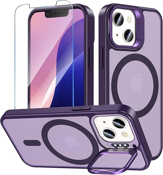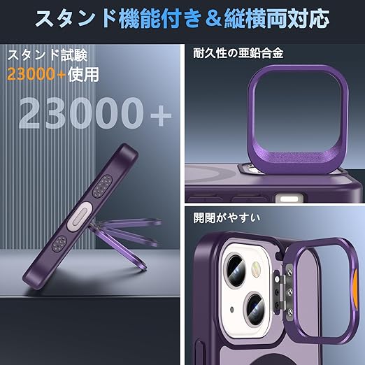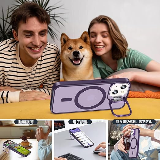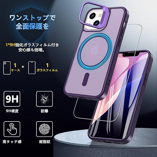 iPhone 12 mini ケース iPhone 13 mini ケース BESINPO [ガラスフィルム付き・MagSafe対応・スタンド機能] いphone12 mini カバー 縦横両対応 調整可能 半透明 黄ばみなし 指紋防止 耐衝撃 マグネット搭載 マグセーフ対応 ストラップホール 隠しスタンド iPhone 12mini/13mini スマホケース 5.4インチ パープル a