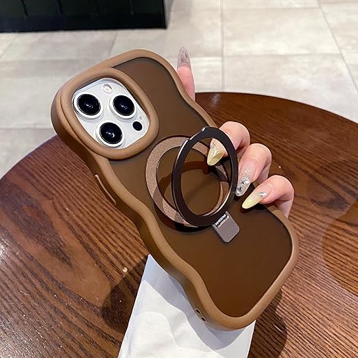 UEEBAI 対応 iPhone 13 Pro Max 用の ケース 半透明 TPU ウェーブデザイン スマホケース 可愛い 人気 おしゃれ ケース Magsafe対応 横縦両立 薄型 軽量 マグネット搭載 波型 バンパー スマホケース - ゴールド a