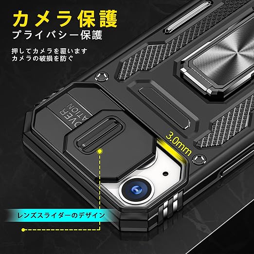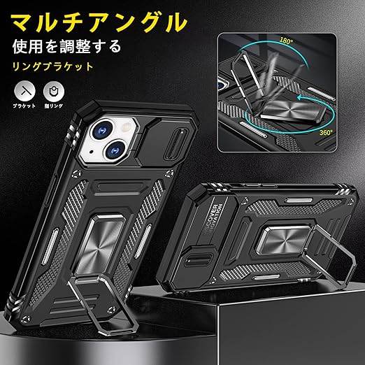 iPhone 13 mini ケース リング付き 耐衝撃 pc+tpu 車載ホルダー対応 軽量 薄型 擦り傷防止 取り出し易い 360°回転 スタンド機能 リング 携帯カバー ブラックLR-10-IP13MI-01 a