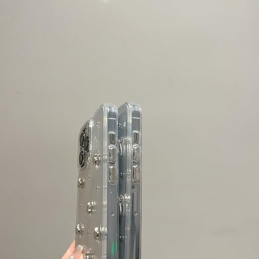 QLTYPRI iPhone13 Pro Max ケース クリア シルバー ミニリボン おしゃれ 韓国 iPhone13 Pro Maxケース 透明 可愛い 耐衝撃 スマホケース 立体 りぼん装飾 きらきら アイフォン13 Pro Max ケース、シルバー a