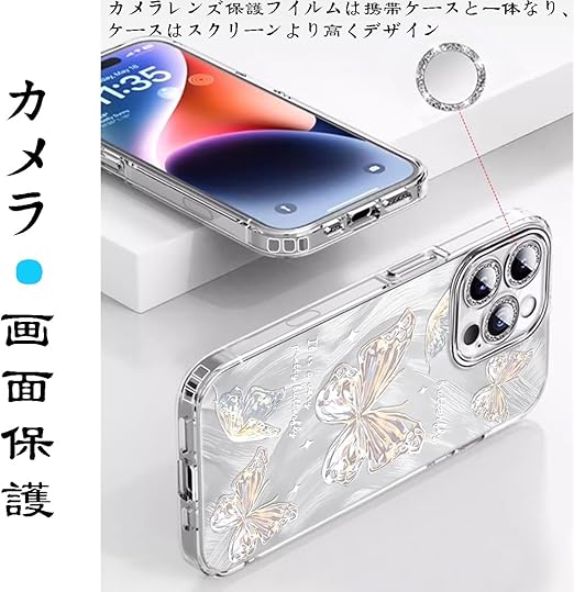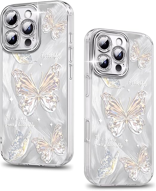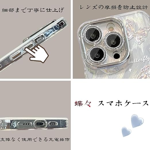 MuZiF iPhone 13 Pro 用 ケース 可愛い ちょう かわいい 韓国 ケース 薄くて軽い 人気 おしゃれ 蝶々 スマホケース 耐衝撃 携帯カバー レンズ保護 携帯ケース アイフォン13 Pro 用 スマホカバー (iPhone 13 Pro,シルバー) a