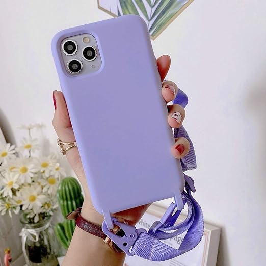 UnnFiko For iPhone SE 第2世代 ケース ネックストラップ For iPhone SE 3/2 スマホケース 適用 iPhone 7 カバー 蛍光色 シリコン アイフォン 8 ケース シンプル ソフト 保護カバー 携帯ストラップ 紐付き 斜めがけ (iPhone 7 / 8 / SE 2/ SE 3, Purple) a