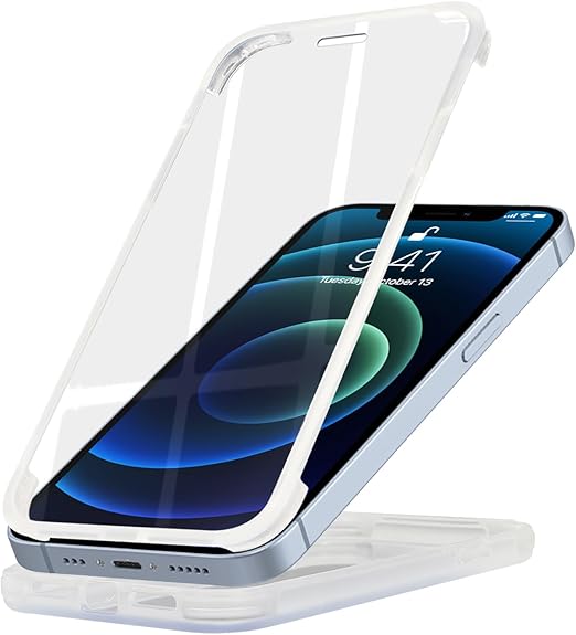 Lipvina iPhone 13 Mini用ケース 両面強化ガラス全面保護 米軍耐衝撃規格準拠 半透明マットな質感 黄変防止加工済み 縦横対応で使いやすいデザイン アイフォン 13 Mini 透 ケース・スマホケース iPhone 13 Mini 人気 5.4インチ(透明) a