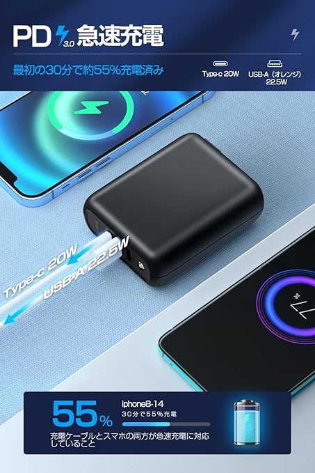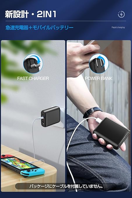 【2in1大容量モバイルバッテリー&急速充電器】従来のモバイルバッテリーや充電器は単機能でしたが、本製品はACアダプターを搭載し、モバイルバッテリーと急速充電器の2役をこなすのが最大の特長です。コンセントに差し込めば急速充電器として使用でき、抜けばすぐに15000mAhのモバイルバッテリーとして利用可能。飛行機内への持ち込みも対応しており、出張・旅行・アウトドア・キャンプ・停電対策・防災グッズとして最適です。