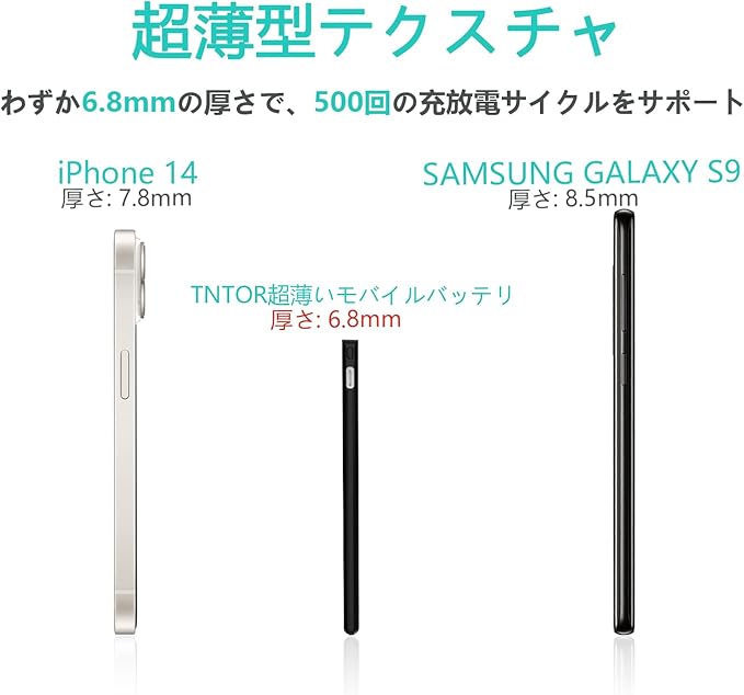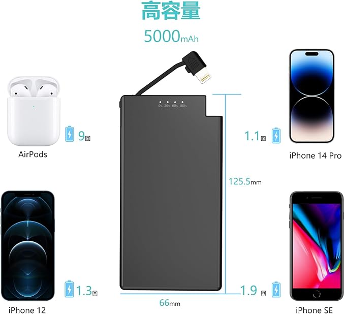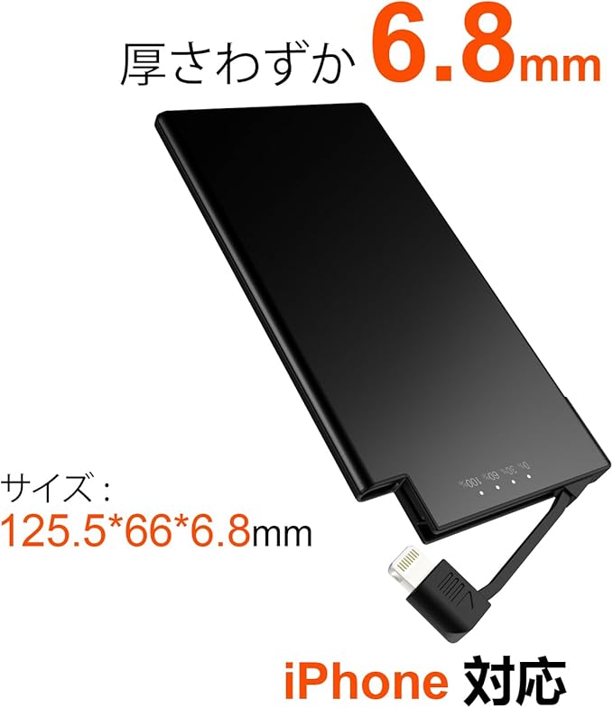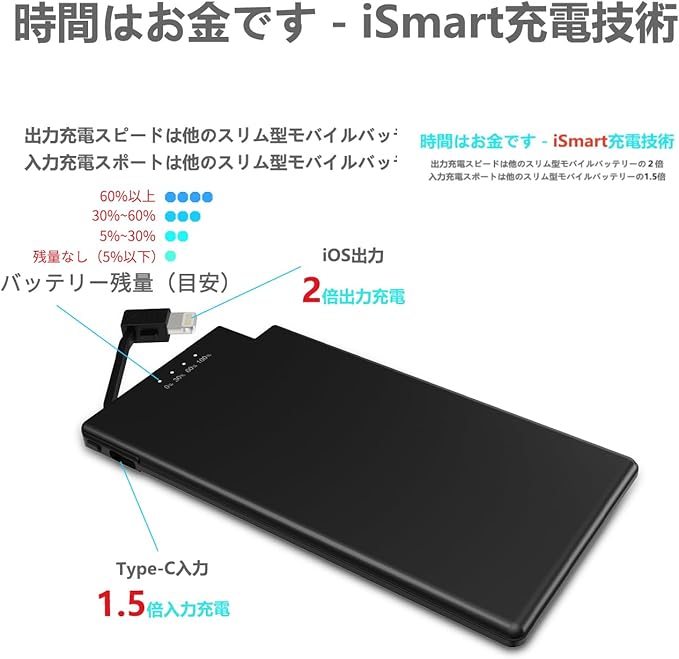 超薄型モバイルバッテリー:薄くて軽い5000mAhのバッテリーです。クレジットカード6枚分の厚さなので、財布やポケット、バッグなどにも入ります。持ち運びが便利です。高品質のスチールを採用し、滑らかで手触りもいいです。(ご注意:現階段では、本商品は新旧バージョン混在での出荷となります。)