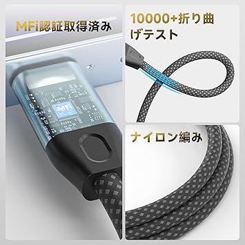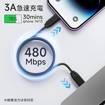 【最大3Aの急速充電】iOS機種に完全対応し、デバイスを素早く充電できます。高品質な素材を使用し、優れた耐久性を持ち、長期間使用しても摩耗や損傷が少なく、安定した充電が可能です。また、過熱や電流の不安定を防ぎ、デバイスを安全に保護します。さらに、高速データ転送にも対応しており、写真や音楽などのデータを素早く同期できます。