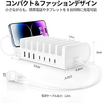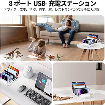 ANNIBER USB充電ステーション 8ポート iphone16 卓上充電スタンド PSE認証済 合計65W 卓上収納 8台同時スマホ/タブレット対応 a