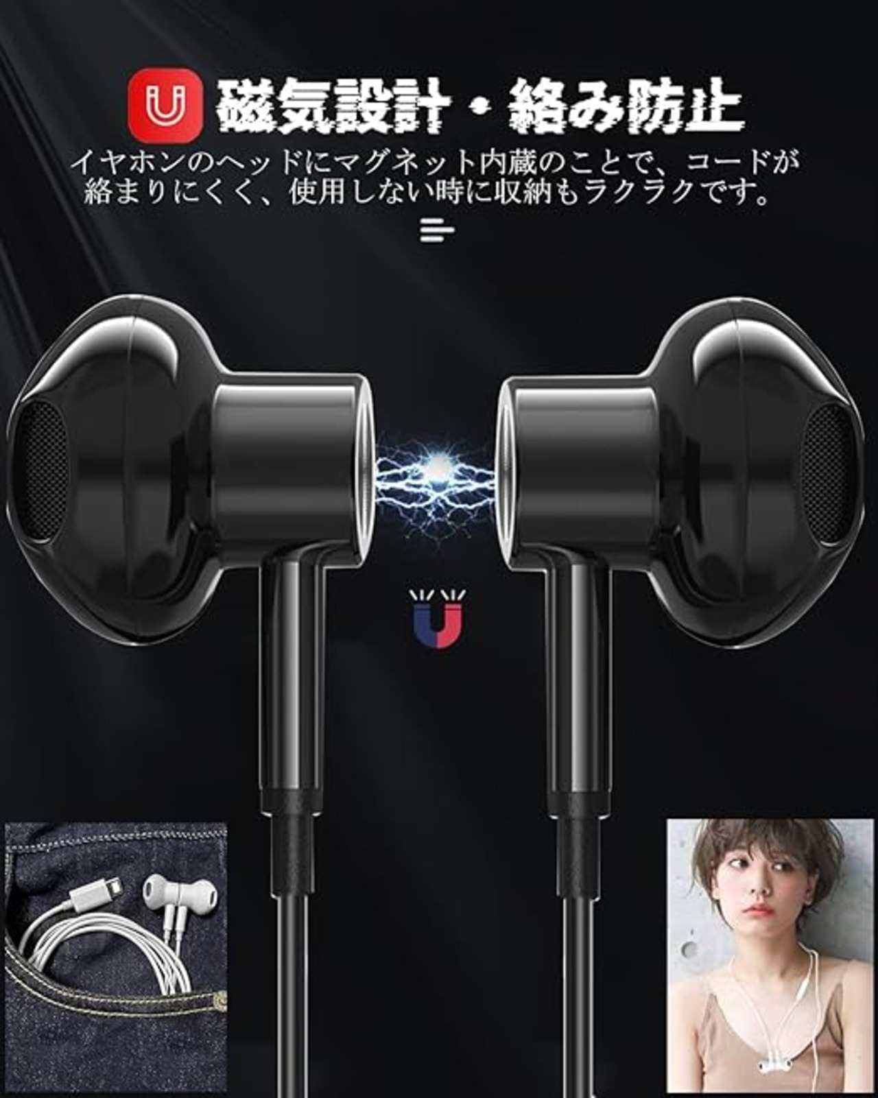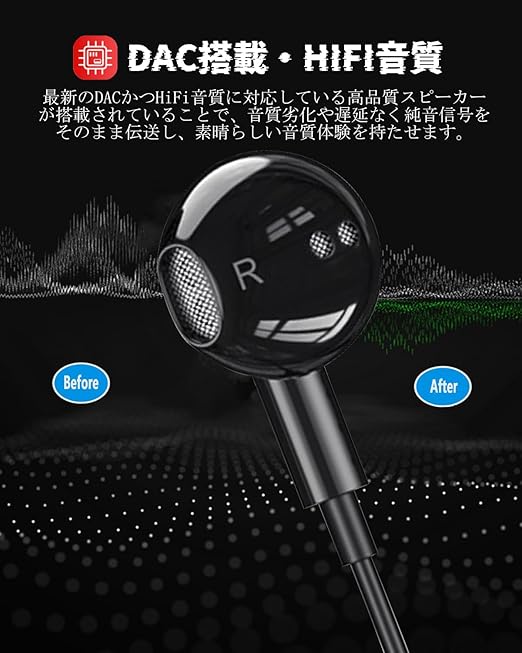 【有線イヤホン・マイク付き】Phone用 有線イヤホンは最新なチップを採用しており、音楽の重低音からクリアな中高音まで音源に忠実な臨場感あふれる音声出力を実現し、まるでコンサート会場のような雰囲気に包まれます。上質なマイクが内蔵していることで、高感度、低ノイズ、クリアな通話が可能となります。コードにリモコン付きにより、音楽再生・一時停止|音量アップ・ダウン|通話応答・終了・拒否|曲切替などが簡単に操作できます。