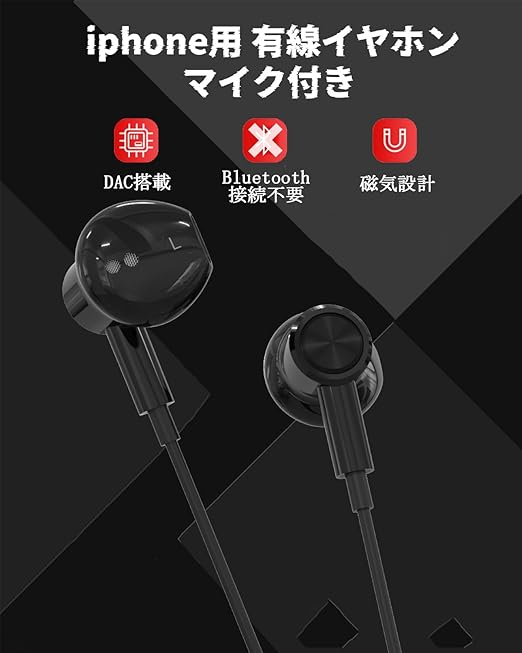 Chayoo i-phone用 イヤホン 有線 マイク付き 有線イヤホン ノイズキャンセリング Bluetooth接続不要 差し込むだけで聞ける DAC搭載 ハイレゾ イヤホンマイク カナル型 磁気設計 絡み防止 音量調整 Phone14/13/12//11/Pad/Pod対応 ブラック a