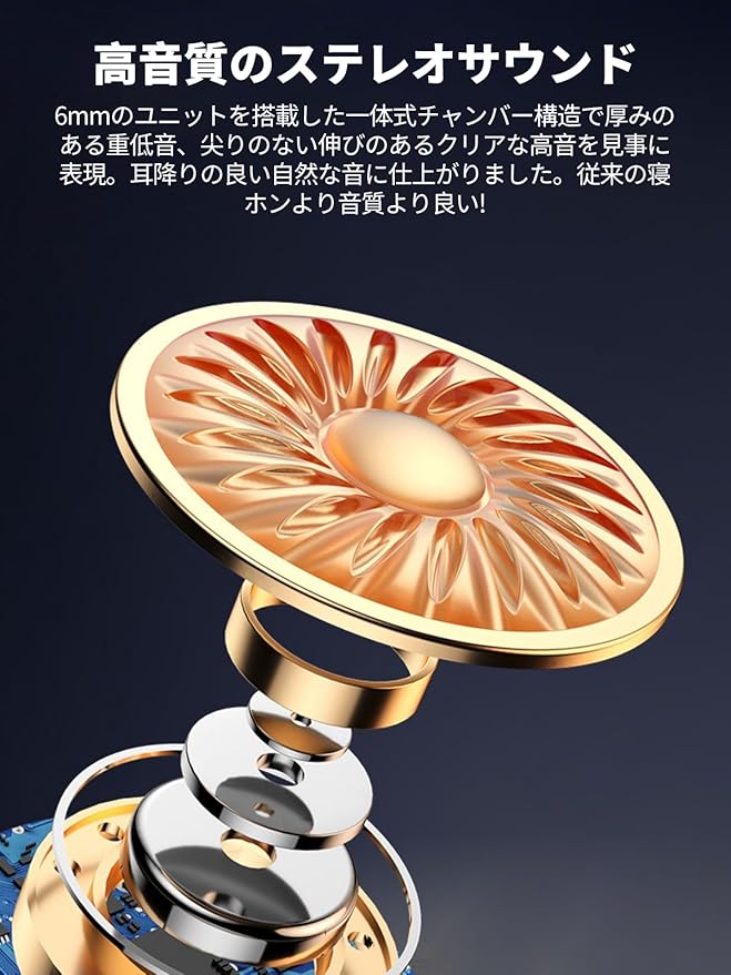 【 寝ホン / 睡眠用イヤホン / ASMRイヤホン】ダブルノイズ遮断イヤホン型設計、物理的なノイズ低減原理、外耳道にフィットして音を遮断し、内耳道にフィットして音声を届ける、高音質のステレオサウンド6mmのユニットを搭載した一体式チャンバー構造で厚みのある重低音、尖りのない伸びのあるクリアな高音を見事に表現。耳障りの良い自然な音に仕上がりました。