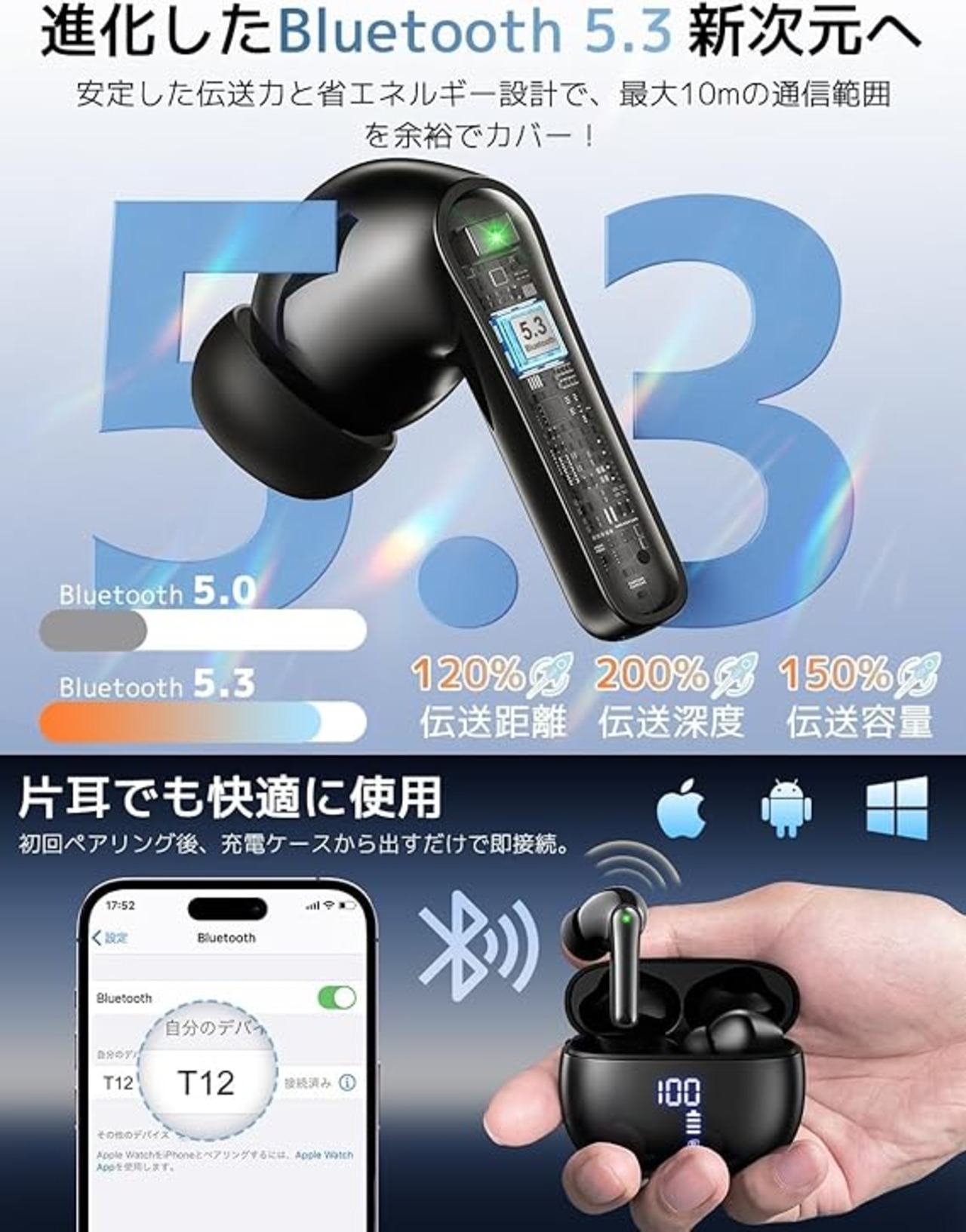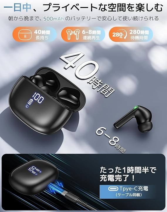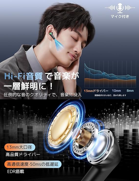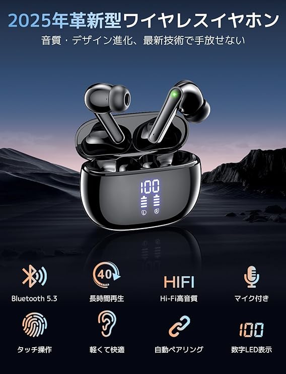 【2025年新発売モデル】年明け超人気の進化型ワイヤレスイヤホン再登場!業界トップクラスBluetooth 5.3チップ&プロ級チューニングを継承しつつ、通話性能と充電効率も劇的改善!ケーブル解放のオシャレ設計はそのままに、進化を手に。【ENCノイズキャンセリング性能】最大35dBノイズ低減の高性能ぶるーとゅーす イヤホンは、街中騒音・電車雑音をカット。低遅延通話とゲーム時の方向知覚に優れ、リモート会議でも明晰な音声を実現。イヤホン bluetooth ならではのノイズリダクション技術で、あらゆ