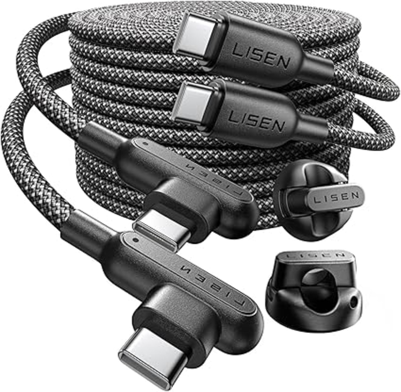 LISEN USB C & USB C ケーブル 急速充電 2m USB PD 100W 2個コードホルダー,充電コード タイプc ケーブル L字 480Mbpsデータ転送 Type-c ナイロン編み ゆーえすびータイプc iPhone16 15/Switch 2/Samsung GalaxyS25 24 MacBook Pro/Air/ipad など対応,マグネット式コードではない,2本セット a