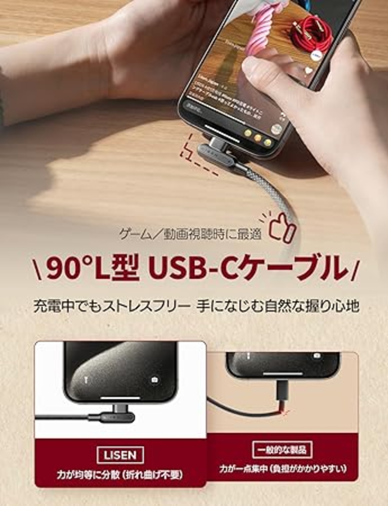 【100W高速充電とPD3.1 Emarkチップ】LISEN 100W USB C ケーブル L字は、記録的な時間であなたのデバイスを充電するために前例のないパワーを提供します。タイプc l字のE-MARK3.1チップは100Wの高速充電を可能にするだけでなく、デバイスの安全性を最大限に高め、24時間一定の充電温度を保証します。 デバイスが完全に充電されると、自動的に充電を停止し、過充電やバッテリーの損傷を防ぎます。注:マグネットケーブルではありません!
