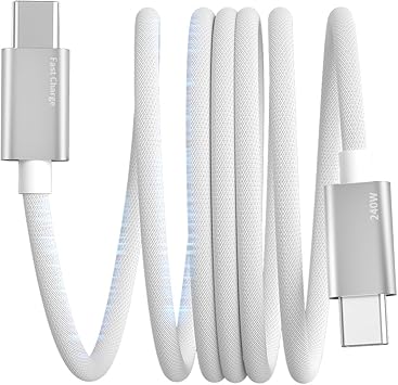 USB-C & USB-C ケーブル 1m マグネット タイプC 充電ケーブル 240W PD3.1対応 急速充電 type c 磁気 巻きつき防止 断線防止 iphone16、iPhone 15、MacBook Pro、Matebook、iPad、Xperia、Galaxy等Type-c機種対応(White) a