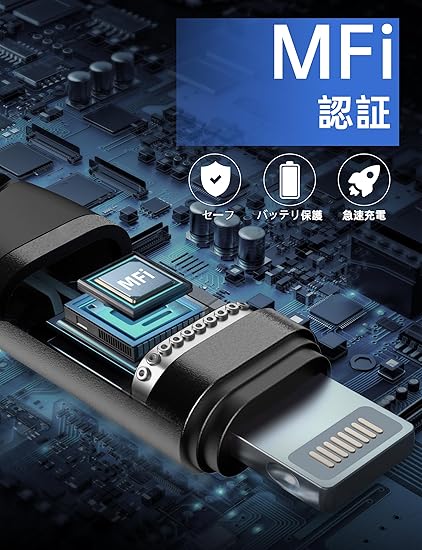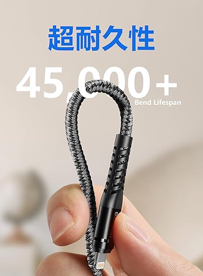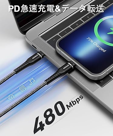 【超高速でデータ転送同期】 Lightning ケーブルは優れた性能により、高速転送速度でデバイスの同期と充電を同時に行うことができます。 データ転送速度は最大480Mbpsで、高効率で急速充電と安定なデータ転送を保証します。