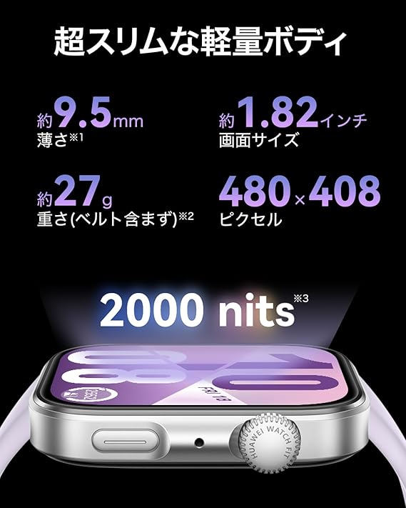 HUAWEI WATCH FIT 4 スマートウォッチ 薄型軽量 1.82インチ大画面 アウトドアに適した気圧計と測位システム 通知 フィットネス ヘルストラッカー 情緒測定 10日間ロングバッテリー iOS/Android パープル a