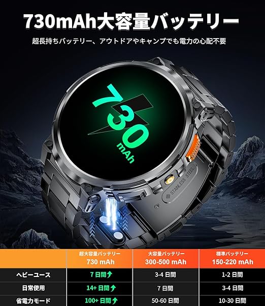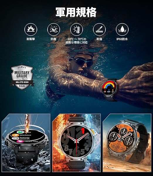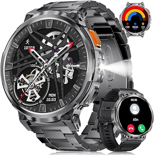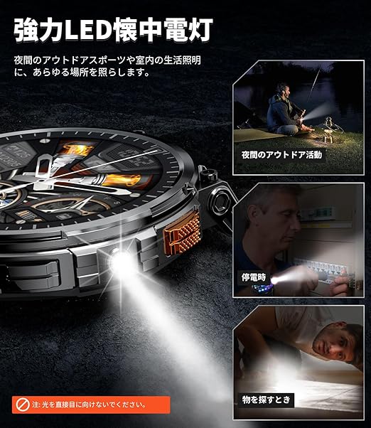 LIGE K66 メンズ スマートウォッチ【2024 懐中電灯機能 軍用規格&防水防塵 &交換可能な2種類のストラップ】 1.85インチディスプレイ 730mAh長持ちバッテリー 通話機 Bluetooth5.3 LINE/メッセージ通知 音楽再生 音声アシスタント 100+運動モード 自由設定文字盤 天気予報 iPhone/Android対応 スポーツスマートウォッチ 黒 (K66-A) a