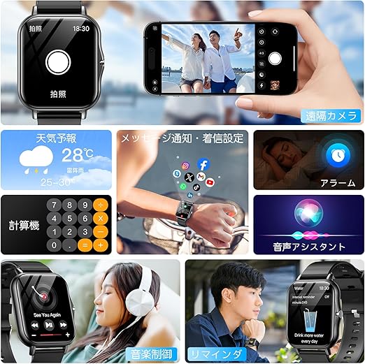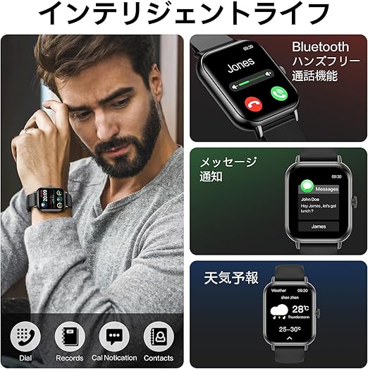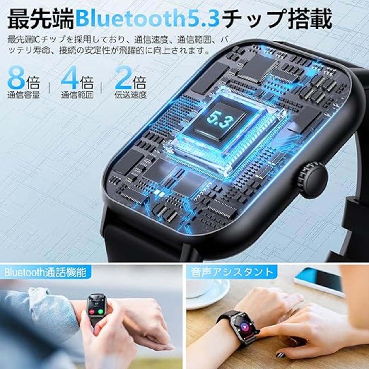 通話機能&着信通知:先端のブルートゥース5.3 と搭載し、低消費エネルギーチップにより スマートウォッチをスピーディーな転送速度で通信範囲が広めに、 通信速度、バッテリ寿命、接続の安定性が飛躍的に向上されます,接続の安定性も大幅に向上されました。更にBluetooth通話機能が搭載され、スピーカーとマイクが内蔵され、スマホと接続された後、スマホを出さなくても、直接にスマートウォッチで通話できます。通話履歴も表示され、通話記録を保存することもできます。スマートウォッチは専用アプリとペアリングし、L
