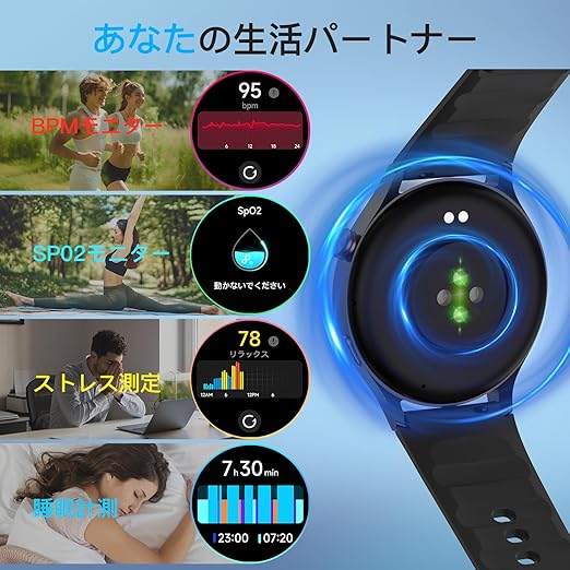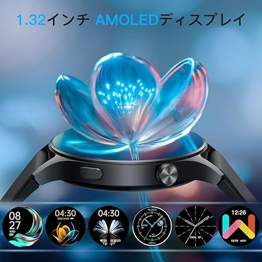 スマートウォッチ 丸型 iPhone対応 アンドロイド対応,Line アプリ通知 2025新型,1.32インチAMOLEDディスプレイ 睡眠管理 BPM SP02 100+種類運動モード 12日長持ち 円型腕時計,IP68防水 常時表示 天気予報 160+文字盤 音楽制御 スマホ探し リモートカメラ 懐中電灯 a