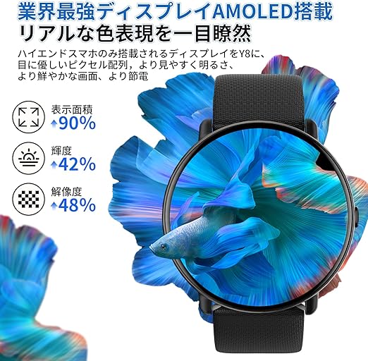 【1.43インチAMOIED大画面タッチスクリーン】新開発のスマートウォッチについて、何千回ものテストと研究を重ね、最終的に1.43インチの超高精細AMOIEDスクリーンを採用することにしました。AMOLEDは従来のLCDパネルと比べ、エネルギー消費が少なく、パネルが独立して発光するため、より豊かで明るく、日中の屋外でも画面がはっきり見えます。