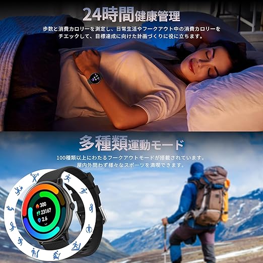 スマートウォッチ 通話機能 メッセージ通知 スマート ウォッチ 円形 丸形 AMOLED HDディスプレイ 1.43インチ 歩数計 Smart watch Bluetooth5.3接続 常時表示 100+種類運動モード 腕時計 DIY文字盤 カレンダー付き 天気予報 目覚まし時計 スポーツウォッチ 誕生日 プレゼント a